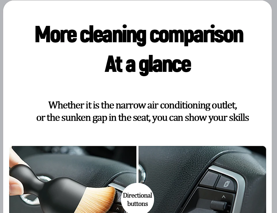 COMFORTABLE HANDLE: The car cleaning brush handle is made of ABS material, which provides a comfortable grip, with round and smooth handle is more comfortable to hold and use. The car interior cleaner, not too big, not too small, perfect size, the car ac cleaner car interior accessory easy to store and carry, convenient duster gadget for car and home use. The car dashboard cleaner with compact and space-saving design that allows you to clean hidden corners thoroughly.